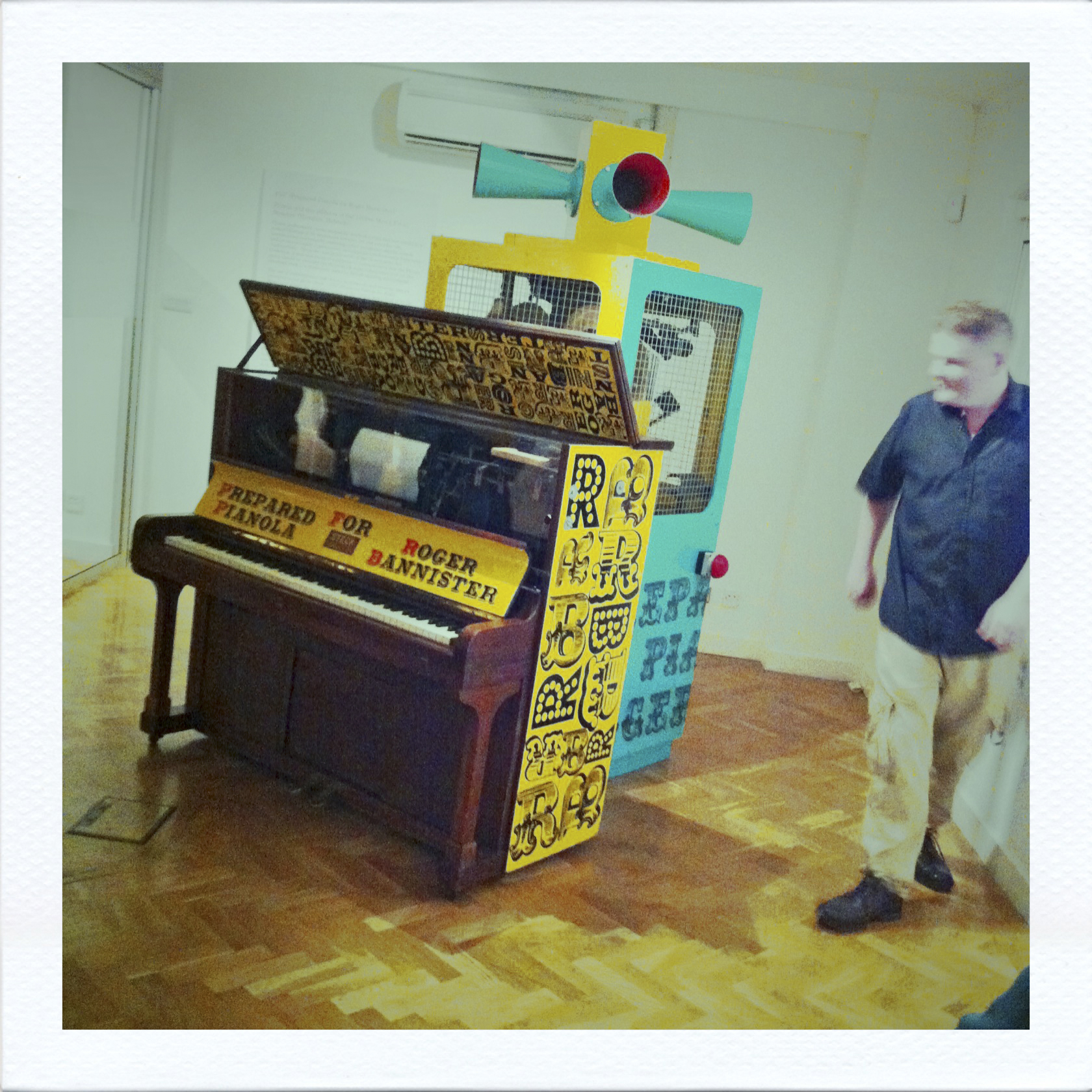 Strangest piece of art owned by We The People, seen on a short tour of the Government Art Collection. [4’ 33”, a 1952 composition by US experimental composer John Cage (1912-1992), is referenced in the title but not played. The actual score for the pianola takes as its starting point athlete Roger Bannister’s performance in the 1952 Helsinki Olympics where he came fourth – the race that spurred him on to his sub 4 minute mile].