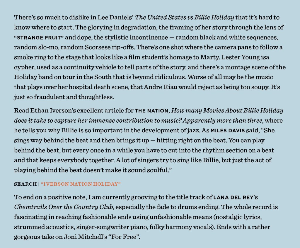 [Text excerpt] …anyway. I’m not a big “let’s get all descriptive as fuck in the review” type guy, because Jesus Christ, just tell me if it’s worth checking out and I’ll figure out the rest on my own. But I know some people need more convincing. Here’s the best review I’ve read so far, if someone going on and on about things is your thing… [there follows a review from Slate, a Spotify playlist and a video link].