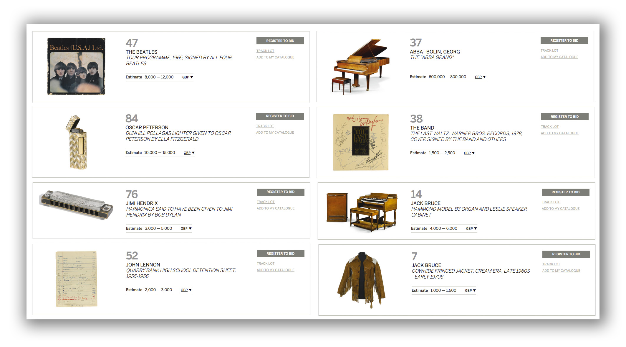 From the upcoming (September 29th) Rock & Pop auction at Sotheby’s in London, these eight lots are my favourites. A spare £150,000 may get you Bob’s original “Hard Rain” lyrics… [From the family of Elisabeth (Lily) Djehizian, the first wife of Hugh Romney (“Wavy Gravy”). Lily met Romney whilst working as a waitress at the Gas Light and was closely associated with many of the artists working in Greenwich Village in the early 1960’s, most notably Lenny Bruce.] Click to enlarge – check out the great Beatles’ (U.S.A.) Ltd. typography.